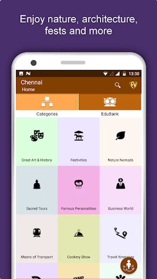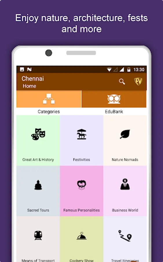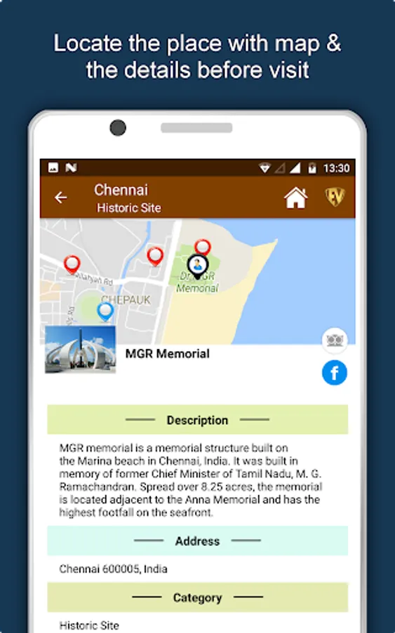 Apart from this, Chennai Travel & Explore guides you Why, When and How to visit various places in Chennai with precise location on the detailed Map. There are two ways to explore this app - Category view and EduBank favorite places view. Pin your destinations and get the routes on the Map. Not only this, you can see exactly how the places look like with Street View integrated in this app. The app also has a feature to Rate and write Review/Experience regarding entity(s) through Login. Your Travel experience and rating will help the user community.