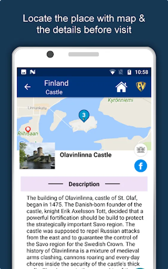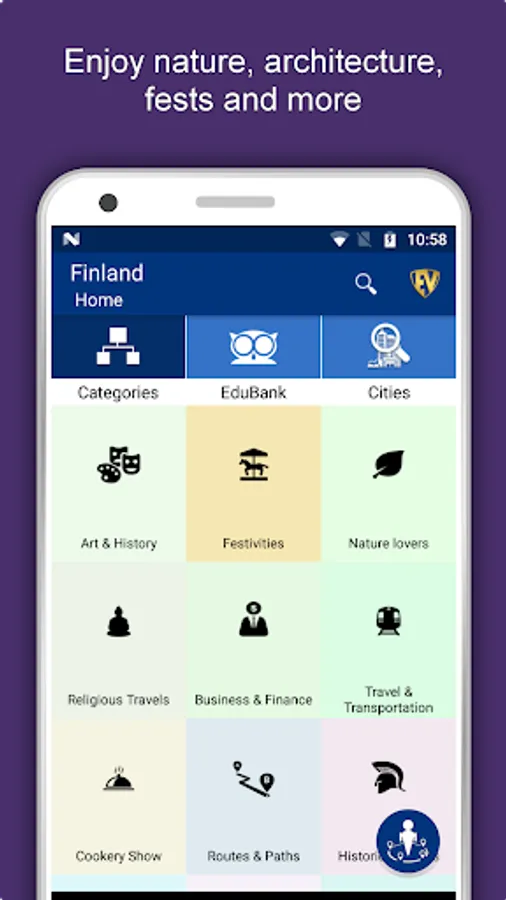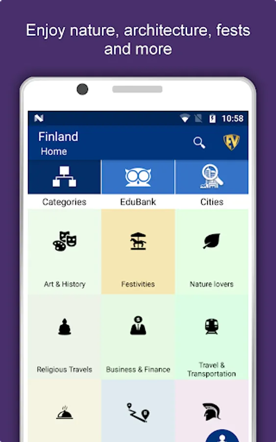 Apart from this, Finland Travel & Explore guides you Why, When and How to visit various places in Finland with precise location on the detailed Map. There are three ways to explore this app - Category view, City view and EduBank favorite places view. Pin your destinations and get the routes on the Map. Not only this, you can see exactly how the places look like with Street View integrated in this app. The app also has a feature to Rate and write Review/Experience regarding entity(s) through Login. Your Travel experience and rating will help the user community.