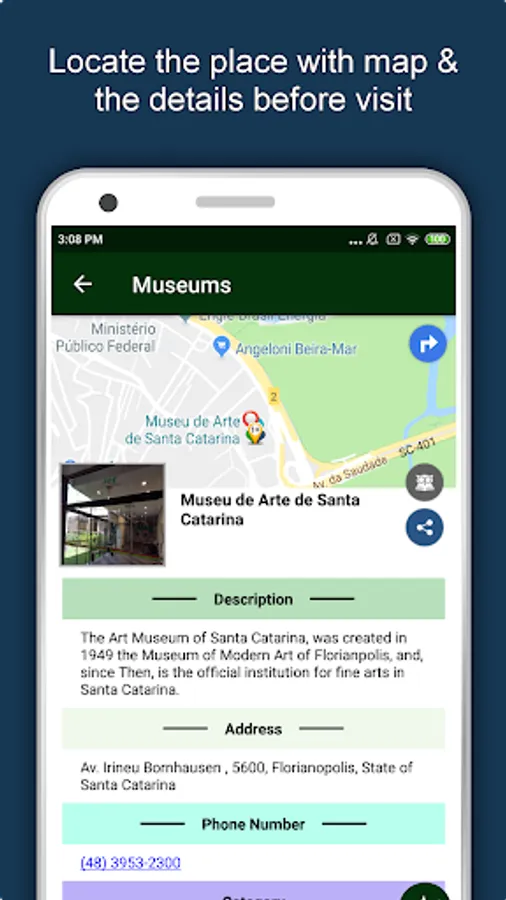 Apart from this, Florianopolis Travel & Explore guides you Why, When and How to visit various places in Florianopolis with precise location on the detailed Map. There are two ways to explore this app - Category view and EduBank favorite places view. Pin your destinations and get the routes on the Map. Not only this, you can see exactly how the places look like with Street View integrated in this app. The app also has a feature to Rate and write Review/Experience regarding entity(s) through Login. Your Travel experience and rating will help the user community.