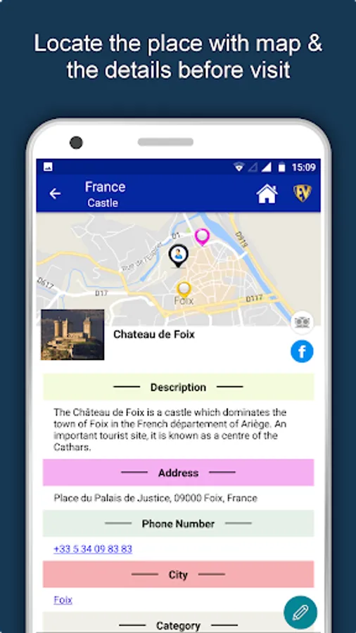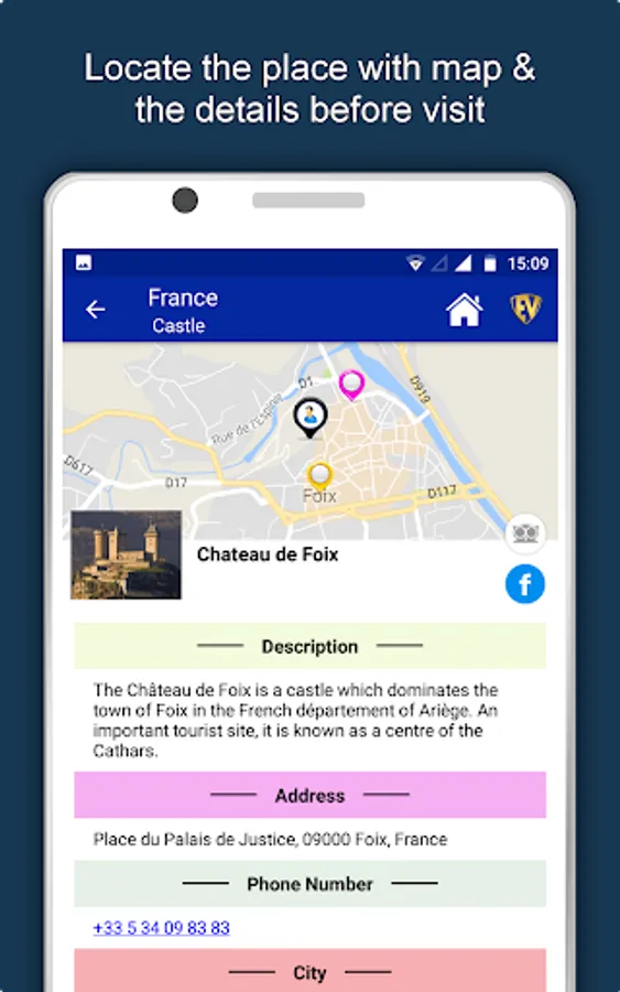 Apart from this, France Travel & Explore guides you Why, When and How to visit various places in France with precise location on the detailed Map. There are three ways to explore this app - Category view, City view and EduBank favorite places view. Pin your destinations and get the routes on the Map. Not only this, you can see exactly how the places look like with Street View integrated in this app. The app also has a feature to Rate and write Review/Experience regarding entity(s) through Login. Your Travel experience and rating will help the user community.