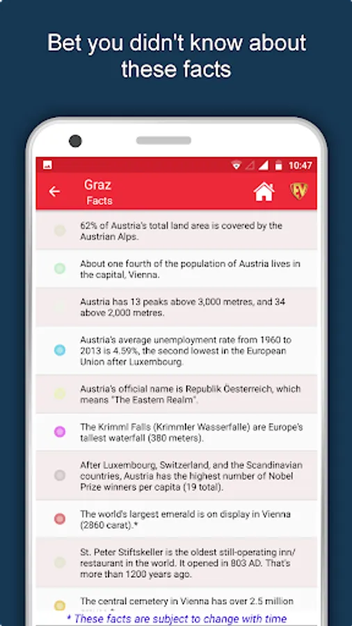 All features and images in Graz City Guide are available offline. This Graz Travel App is for the globetrotters who go by the quote, “All journeys have secret destinations of which the traveler is unaware”. With Graz Tourist Guide, Unveil the Veiled places, Connect with plethora of people, understand culture, art and history, Speak with natives in their language, relish the authentic food and take delight in the festivities.