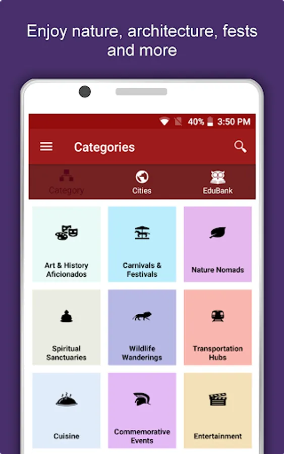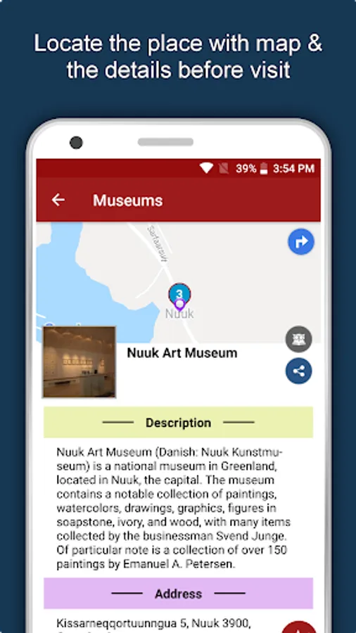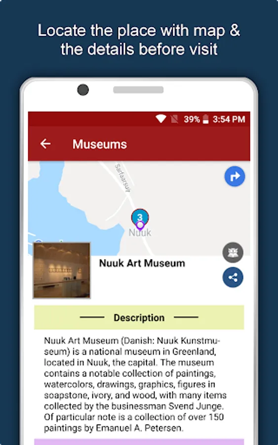 Apart from this, Greenland Travel & Explore guides you Why, When and How to visit various places in Greenland with precise location on the detailed Map. There are three ways to explore this app - Category view, City view and EduBank favorite places view. Pin your destinations and get the routes on the Map. Not only this, you can see exactly how the places look like with Street View integrated in this app. The app also has a feature to Rate and write Review/Experience regarding entity(s) through Login. Your Travel experience and rating will help the user community.
