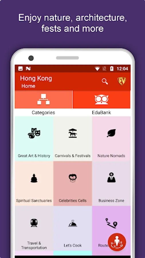 Apart from this, Hong Kong Travel & Explore guides you Why, When and How to visit various places in Hong Kong with precise location on the detailed Map. There are three ways to explore this app - Category view, City view and EduBank favorite places view. Pin your destinations and get the routes on the Map. Not only this, you can see exactly how the places look like with Street View integrated in this app. The app also has a feature to Rate and write Review/Experience regarding entity(s) through Login. Your Travel experience and rating will help the user community.