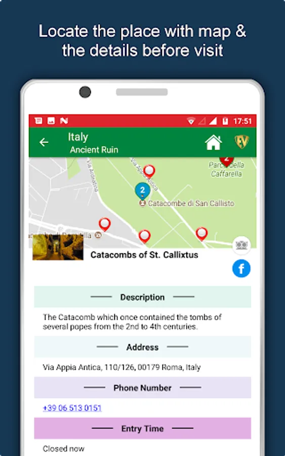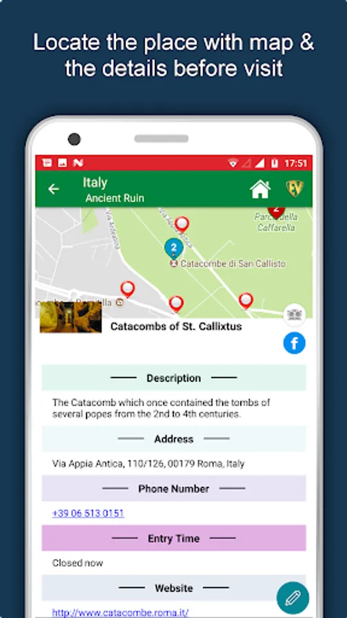 Apart from this, Italy Travel & Explore guides you Why, When and How to visit various places in Italy with precise location on the detailed Map. There are three ways to explore this app - Category view, City view and EduBank favorite places view. Pin your destinations and get the routes on the Map. Not only this, you can see exactly how the places look like with Street View integrated in this app. The app also has a feature to Rate and write Review/Experience regarding entity(s) through Login. Your Travel experience and rating will help the user community.