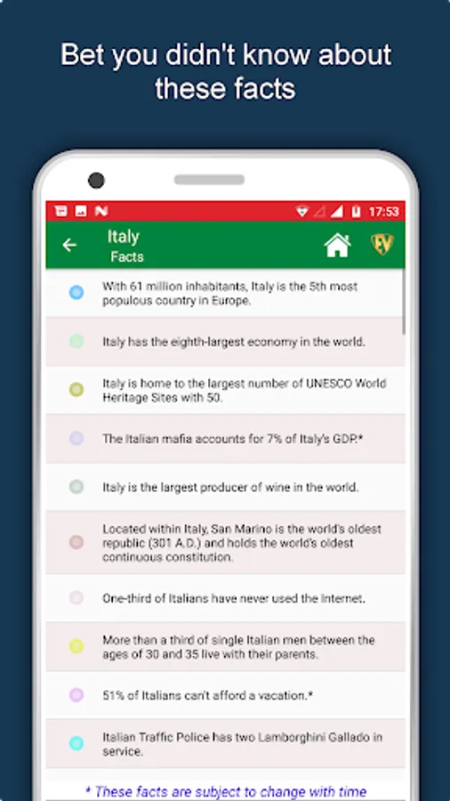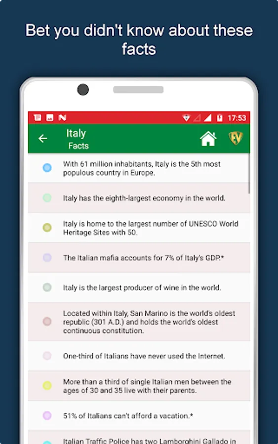 All features and images in Italy Country Guide are available offline. This Italy Travel App is for the globetrotters who go by the quote, “All journeys have secret destinations of which the traveler is unaware”. With Italy Tourist Guide, Unveil the Veiled places, Connect with plethora of people, understand culture, art and history, Speak with natives in their language, relish the authentic food and take delight in the festivities.