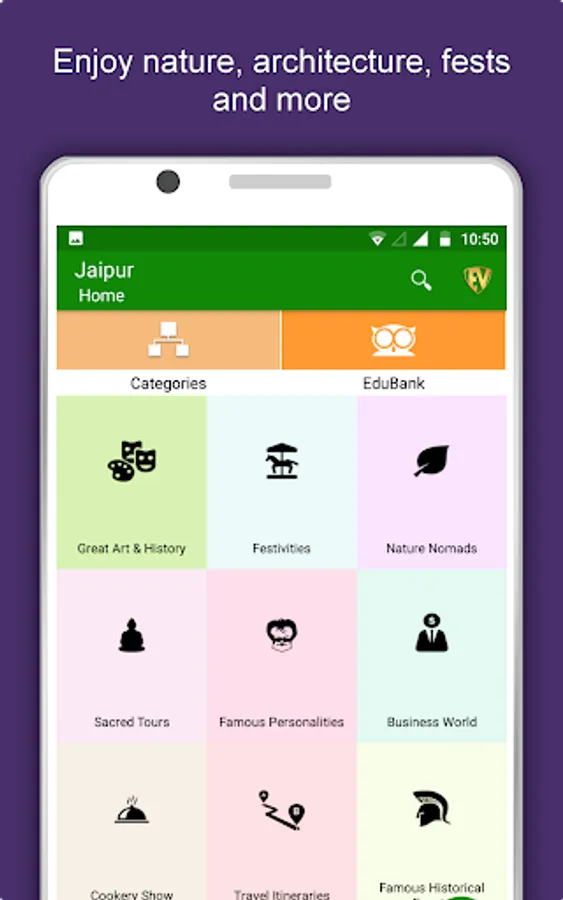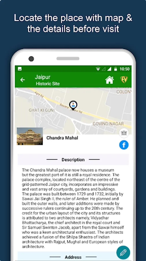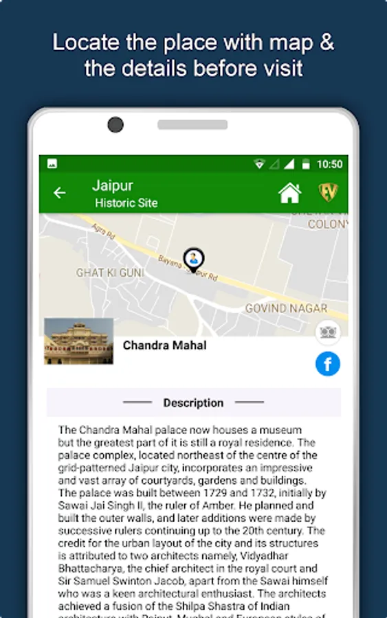 Apart from this, Jaipur Travel & Explore guides you Why, When and How to visit various places in Jaipur with precise location on the detailed Map. There are two ways to explore this app - Category view and EduBank favorite places view. Pin your destinations and get the routes on the Map. Not only this, you can see exactly how the places look like with Street View integrated in this app. The app also has a feature to Rate and write Review/Experience regarding entity(s) through Login. Your Travel experience and rating will help the user community.