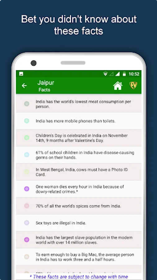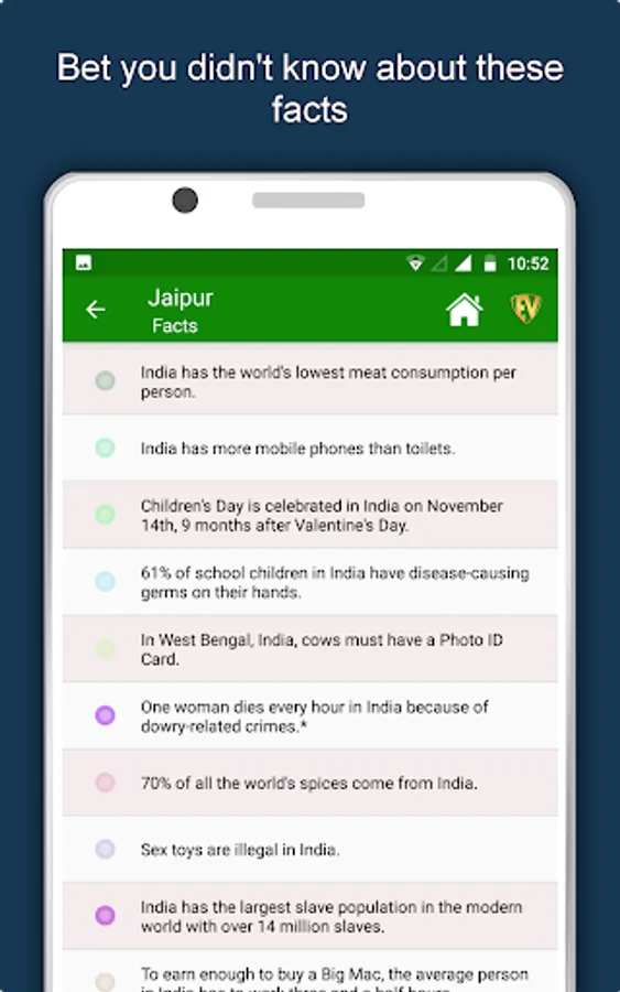 Are you a wanderer who is planning to Travel to Jaipur or an escapist who wants to pay a virtual tour on maps? Interested in its people, culture, art, history, cuisine, flora and fauna? Want to get complete Guide for the exquisite places of Jaipur like Elefantastic, Jantar Mantar - Jaipur, Amer Jeep Safari, Birla Mandir Temple, Govind Devji Temple, Hawa Mahal - Palace of Wind, Moti Dungari Temple, Panna Meena ka Kund, Ganesh Pol Gateway, Albert Hall Museum. Want to speak like a native in Hindi or plan your route on the map? If yes, then this Jaipur Travel & Explore app is just for you!