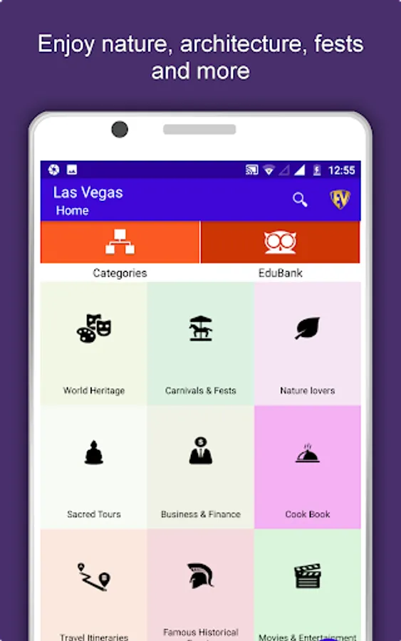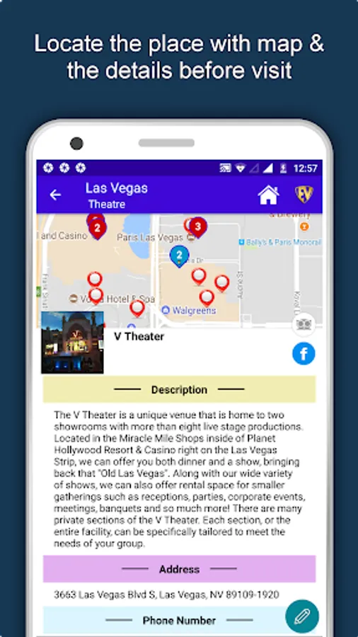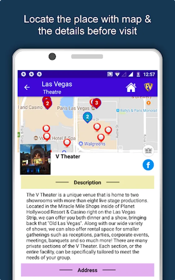 Apart from this, Las Vegas Travel & Explore guides you Why, When and How to visit various places in Las Vegas with precise location on the detailed Map. There are two ways to explore this app - Category view and EduBank favorite places view. Pin your destinations and get the routes on the Map. Not only this, you can see exactly how the places look like with Street View integrated in this app. The app also has a feature to Rate and write Review/Experience regarding entity(s) through Login. Your Travel experience and rating will help the user community.