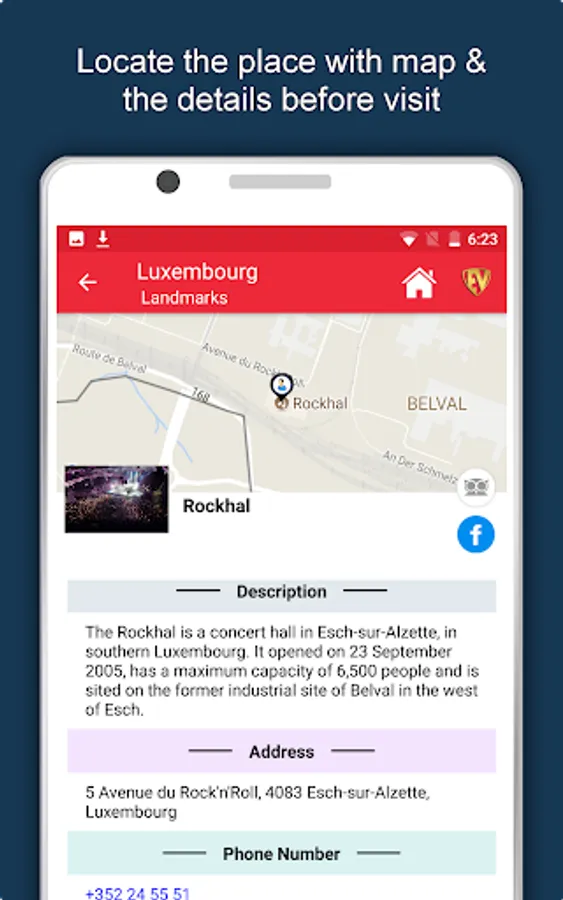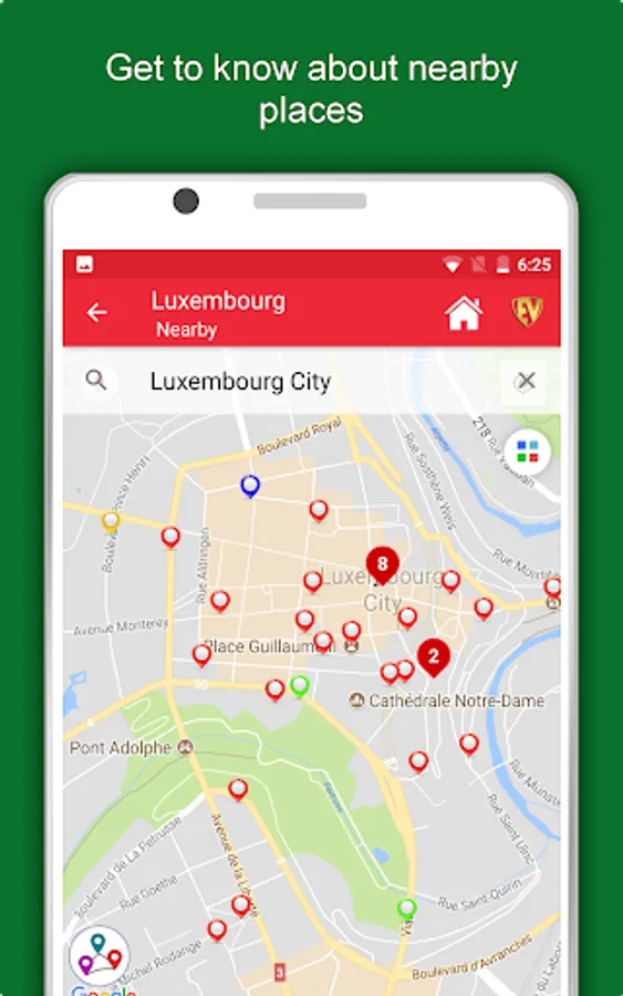 Apart from this, Luxembourg Travel & Explore guides you Why, When and How to visit various places in Luxembourg with precise location on the detailed Map. There are three ways to explore this app - Category view, City view and EduBank favorite places view. Pin your destinations and get the routes on the Map. Not only this, you can see exactly how the places look like with Street View integrated in this app. The app also has a feature to Rate and write Review/Experience regarding entity(s) through Login. Your Travel experience and rating will help the user community.