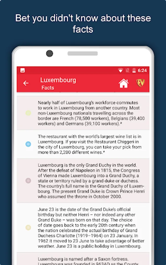 All features and images in Luxembourg Country Guide are available offline. This Luxembourg Travel App is for the globetrotters who go by the quote, “All journeys have secret destinations of which the traveler is unaware”. With Luxembourg Tourist Guide, Unveil the Veiled places, Connect with plethora of people, understand culture, art and history, Speak with natives in their language, relish the authentic food and take delight in the festivities.