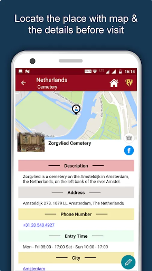 Apart from this, Netherlands Travel & Explore guides you Why, When and How to visit various places in Netherlands with precise location on the detailed Map. There are three ways to explore this app - Category view, City view and EduBank favorite places view. Pin your destinations and get the routes on the Map. Not only this, you can see exactly how the places look like with Street View integrated in this app. The app also has a feature to Rate and write Review/Experience regarding entity(s) through Login. Your Travel experience and rating will help the user community.