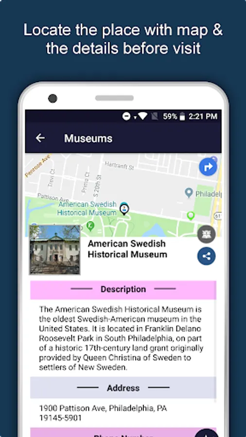 Apart from this, Philadelphia Travel & Explore guides you Why, When and How to visit various places in Philadelphia with precise location on the detailed Map. There are two ways to explore this app - Category view and EduBank favorite places view. Pin your destinations and get the routes on the Map. Not only this, you can see exactly how the places look like with Street View integrated in this app. The app also has a feature to Rate and write Review/Experience regarding entity(s) through Login. Your Travel experience and rating will help the user community.