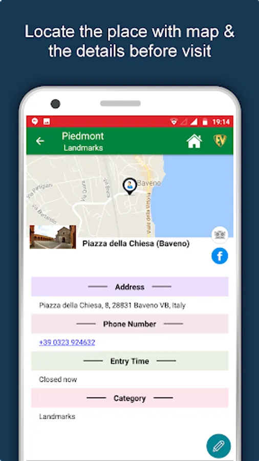Apart from this, Piedmont Travel & Explore guides you Why, When and How to visit various places in Piedmont with precise location on the detailed Map. There are two ways to explore this app - Category view and EduBank favorite places view. Pin your destinations and get the routes on the Map. Not only this, you can see exactly how the places look like with Street View integrated in this app. The app also has a feature to Rate and write Review/Experience regarding entity(s) through Login. Your Travel experience and rating will help the user community.