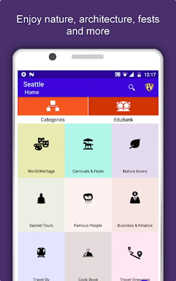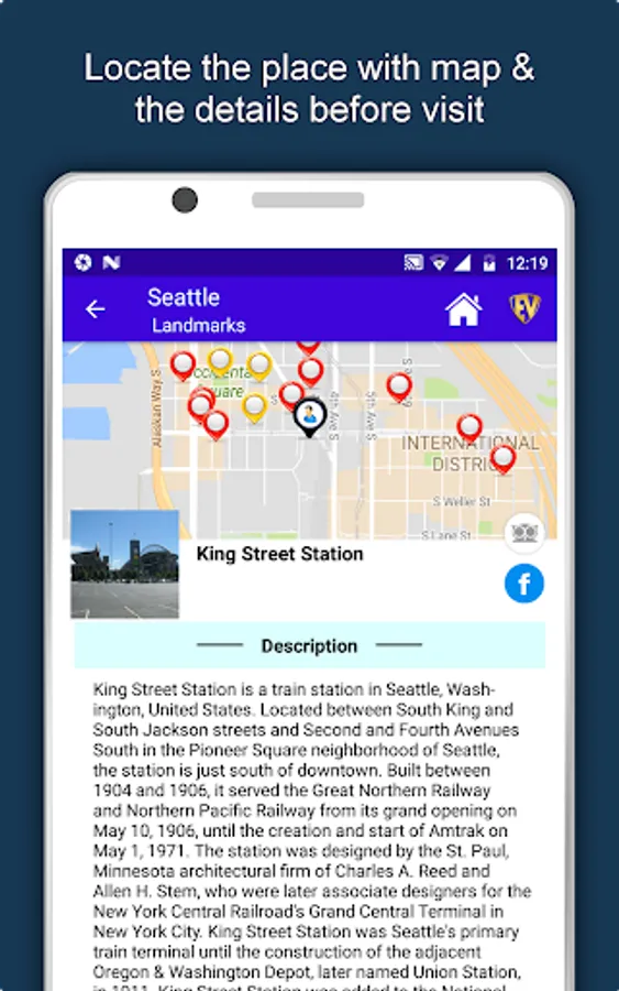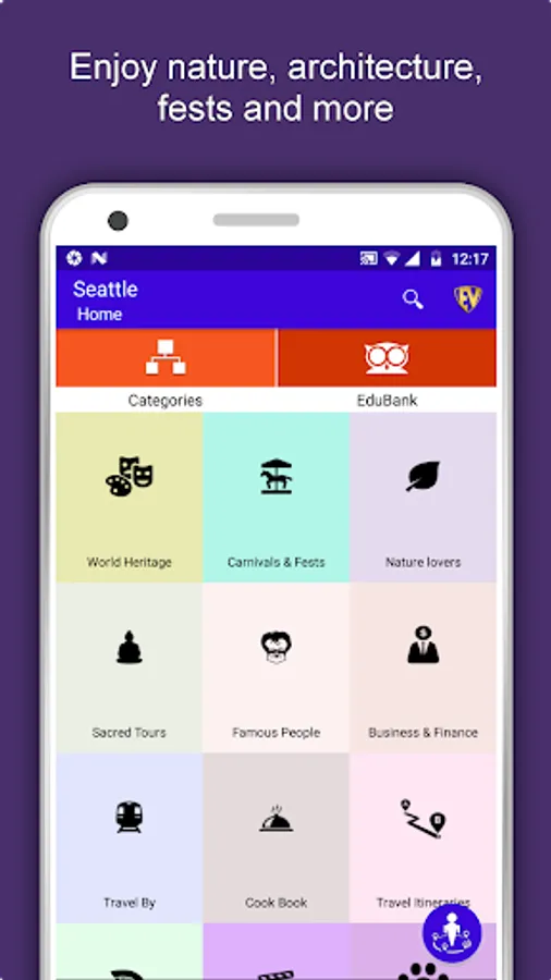 Apart from this, Seattle Travel & Explore guides you Why, When and How to visit various places in Seattle with precise location on the detailed Map. There are two ways to explore this app - Category view and EduBank favorite places view. Pin your destinations and get the routes on the Map. Not only this, you can see exactly how the places look like with Street View integrated in this app. The app also has a feature to Rate and write Review/Experience regarding entity(s) through Login. Your Travel experience and rating will help the user community.