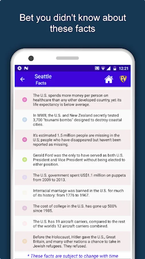 All features and images in Seattle City Guide are available offline. This Seattle Travel App is for the globetrotters who go by the quote, “All journeys have secret destinations of which the traveler is unaware”. With Seattle Tourist Guide, Unveil the Veiled places, Connect with plethora of people, understand culture, art and history, Speak with natives in their language, relish the authentic food and take delight in the festivities.
