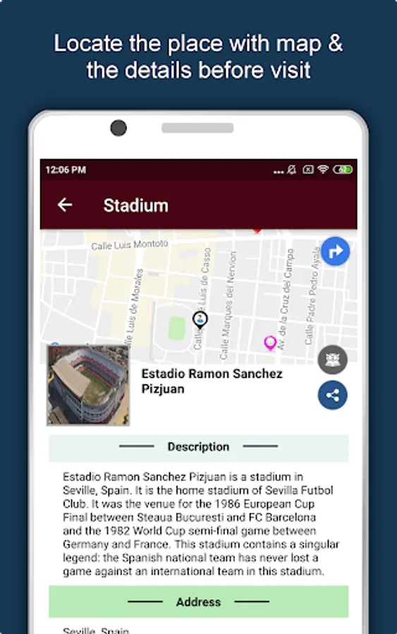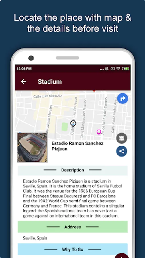 Apart from this, Seville Travel & Explore guides you Why, When and How to visit various places in Seville with precise location on the detailed Map. There are two ways to explore this app - Category view and EduBank favorite places view. Pin your destinations and get the routes on the Map. Not only this, you can see exactly how the places look like with Street View integrated in this app. The app also has a feature to Rate and write Review/Experience regarding entity(s) through Login. Your Travel experience and rating will help the user community.