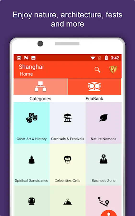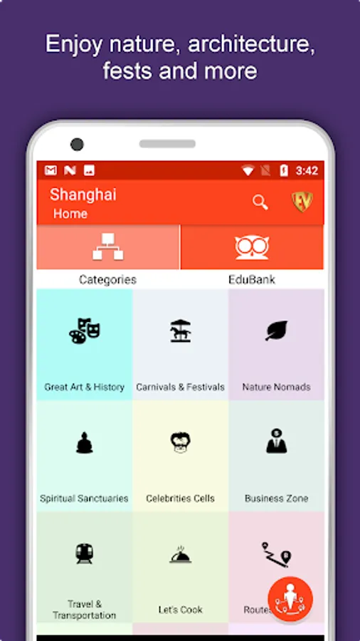 Apart from this, Shanghai Travel & Explore guides you Why, When and How to visit various places in Shanghai with precise location on the detailed Map. There are two ways to explore this app - Category view and EduBank favorite places view. Pin your destinations and get the routes on the Map. Not only this, you can see exactly how the places look like with Street View integrated in this app. The app also has a feature to Rate and write Review/Experience regarding entity(s) through Login. Your Travel experience and rating will help the user community.