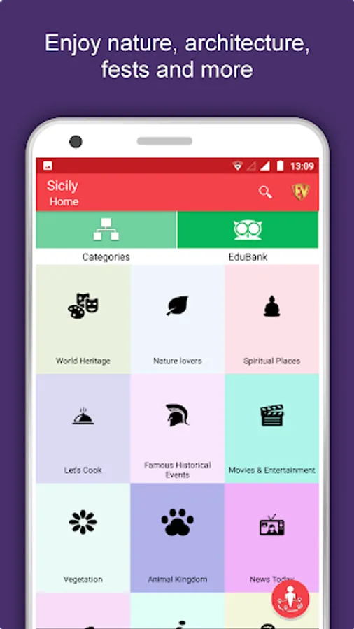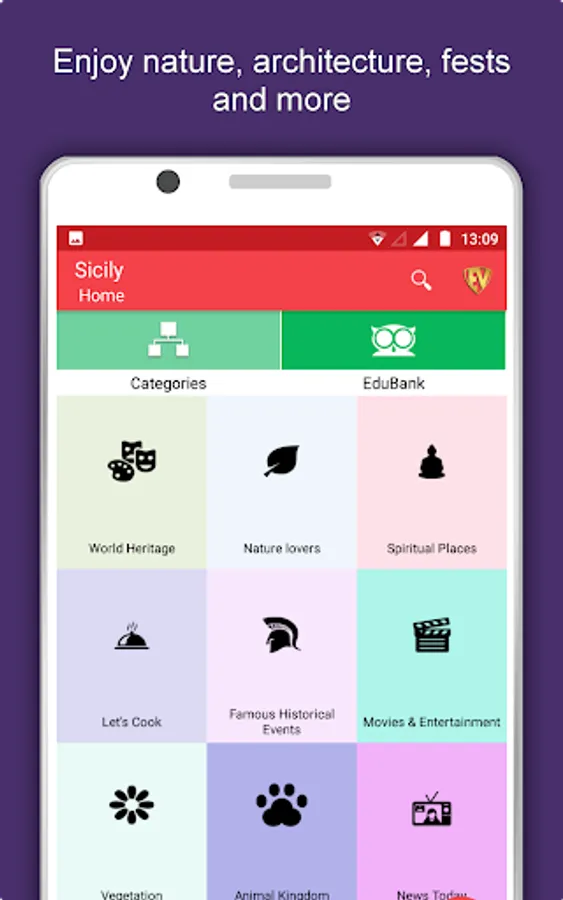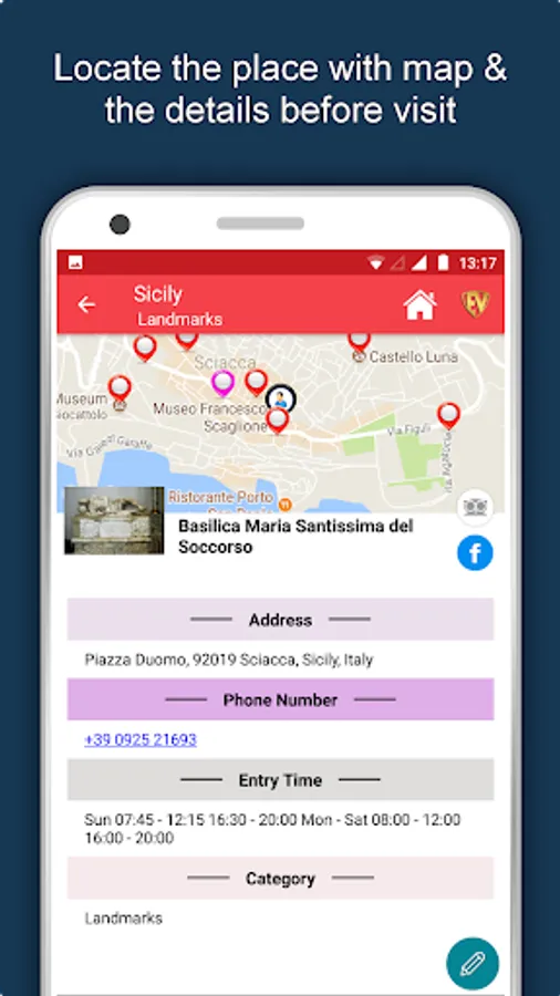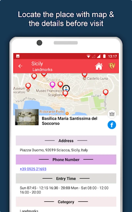 Apart from this, Sicily Travel & Explore guides you Why, When and How to visit various places in Sicily with precise location on the detailed Map. There are two ways to explore this app - Category view and EduBank favorite places view. Pin your destinations and get the routes on the Map. Not only this, you can see exactly how the places look like with Street View integrated in this app. The app also has a feature to Rate and write Review/Experience regarding entity(s) through Login. Your Travel experience and rating will help the user community.