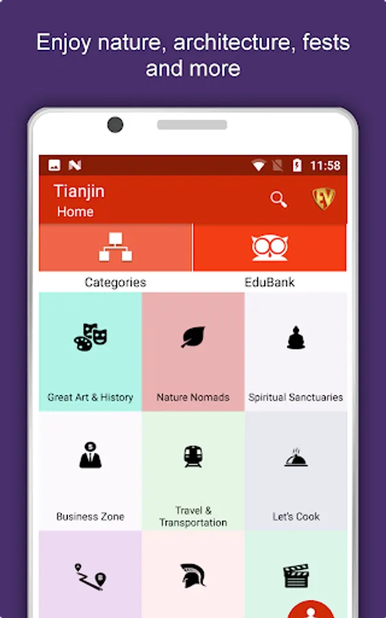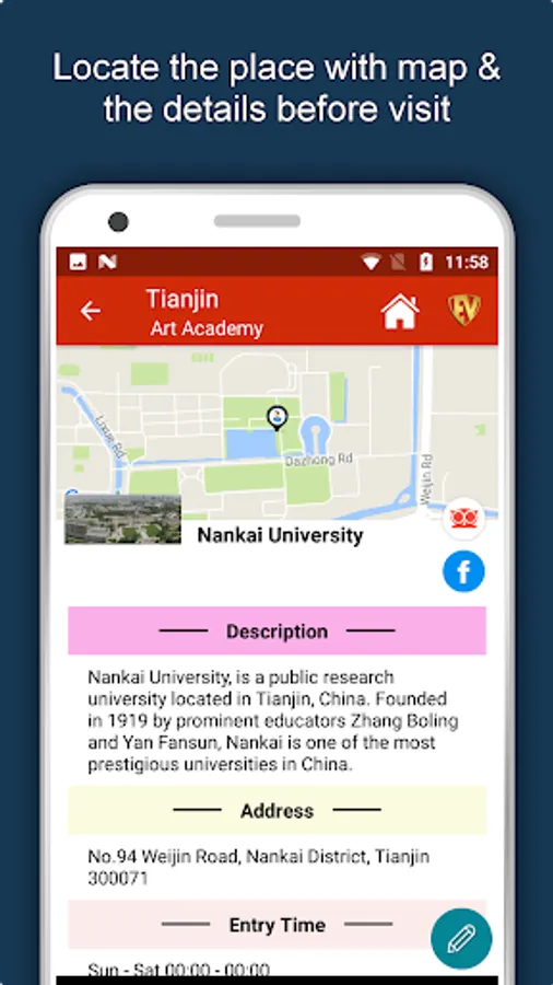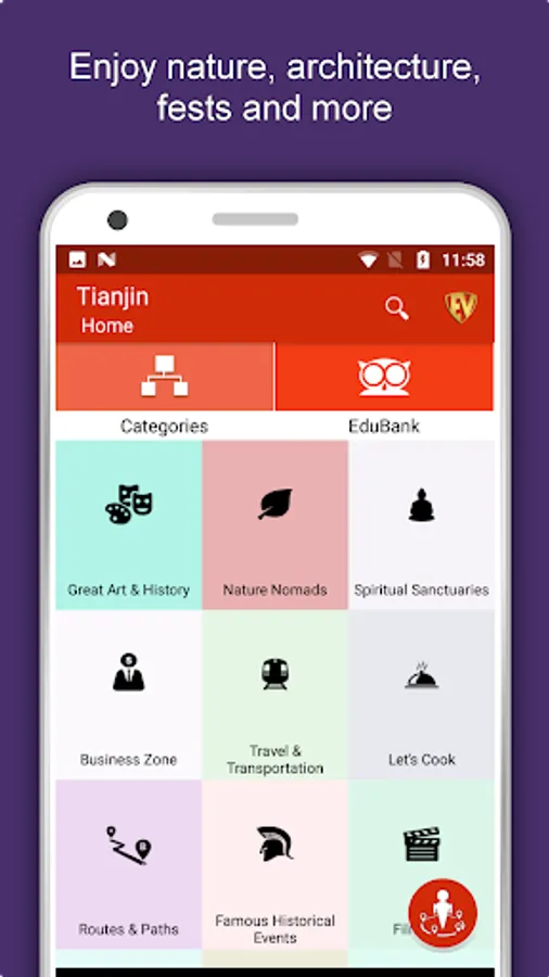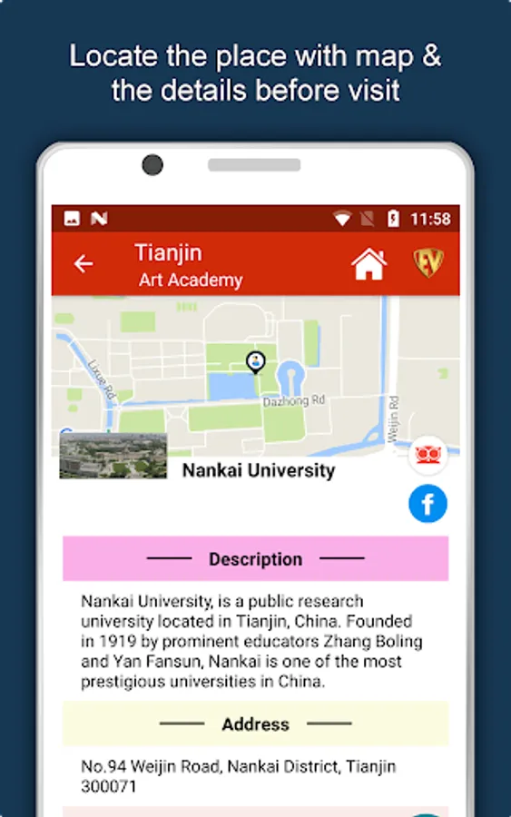 Apart from this, Tianjin Travel & Explore guides you Why, When and How to visit various places in Tianjin with precise location on the detailed Map. There are two ways to explore this app - Category view and EduBank favorite places view. Pin your destinations and get the routes on the Map. Not only this, you can see exactly how the places look like with Street View integrated in this app. The app also has a feature to Rate and write Review/Experience regarding entity(s) through Login. Your Travel experience and rating will help the user community.