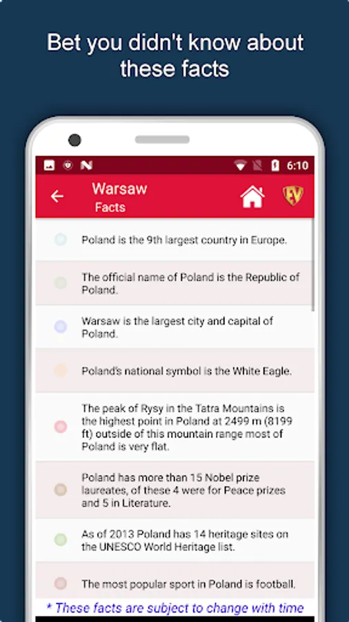 All features and images in Warsaw City Guide are available offline. This Warsaw Travel App is for the globetrotters who go by the quote, “All journeys have secret destinations of which the traveler is unaware”. With Warsaw Tourist Guide, Unveil the Veiled places, Connect with plethora of people, understand culture, art and history, Speak with natives in their language, relish the authentic food and take delight in the festivities.