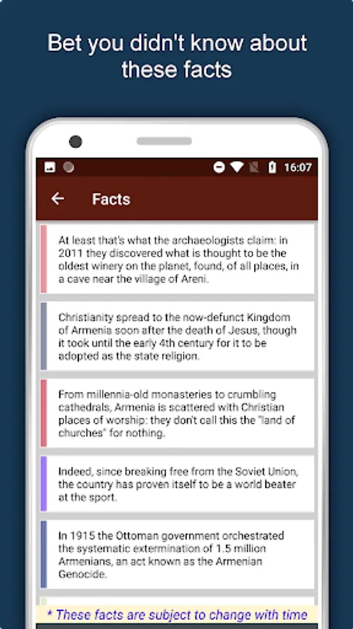 All features and images in Yerevan City Guide are available offline. This Yerevan Travel App is for the globetrotters who go by the quote, “All journeys have secret destinations of which the traveler is unaware”. With Yerevan Tourist Guide, Unveil the Veiled places, Connect with plethora of people, understand culture, art and history, Speak with natives in their language, relish the authentic food and take delight in the festivities.