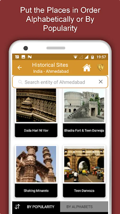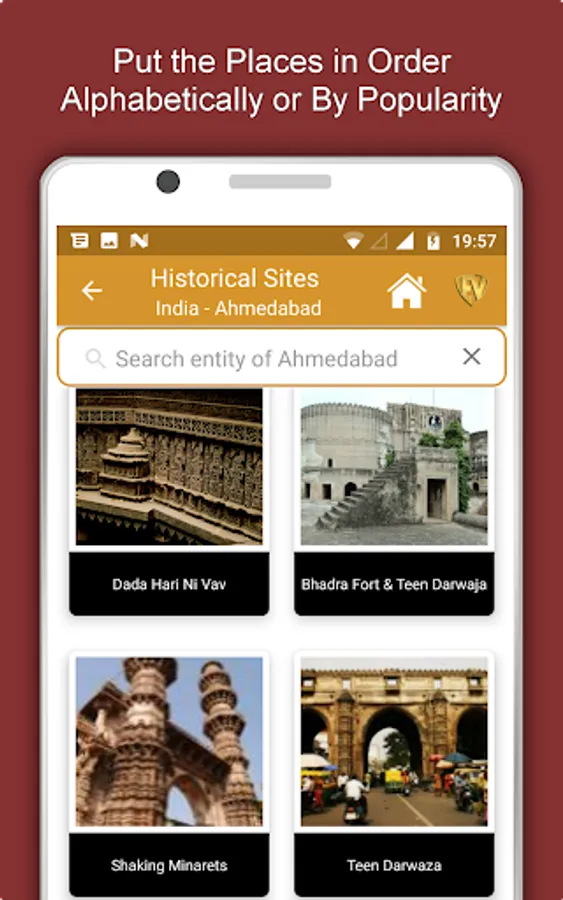 * Search - Perform a quick search in the search box to know the famous Historical Sites quickly!