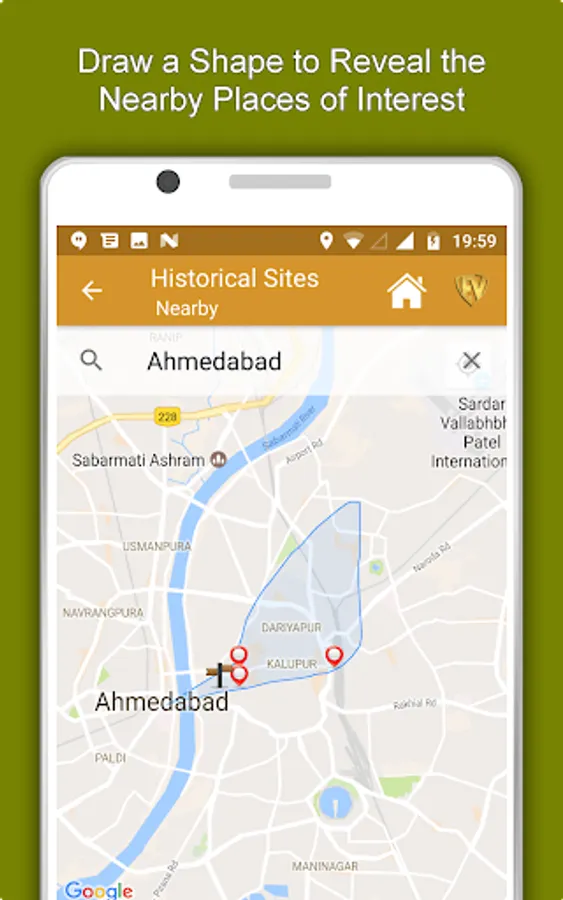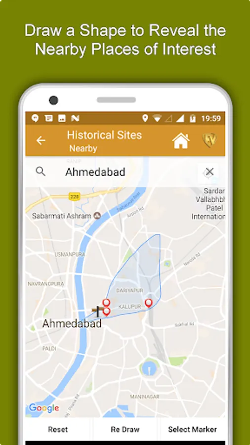 * Nearby or Map feature - It has 3 options- Draw Shape, Select Marker and Reset. You can choose accordingly.