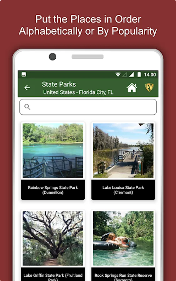 * Search - Perform a quick search in the search box to know the famous State Parks quickly!