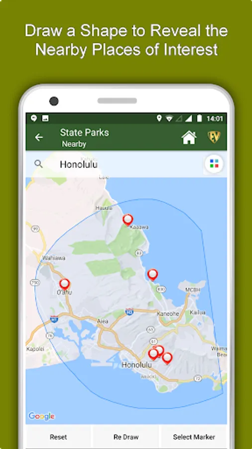 * Nearby or Map feature - It has 3 options- Draw Shape, Select Marker and Reset. You can choose accordingly.