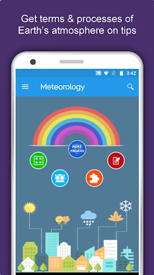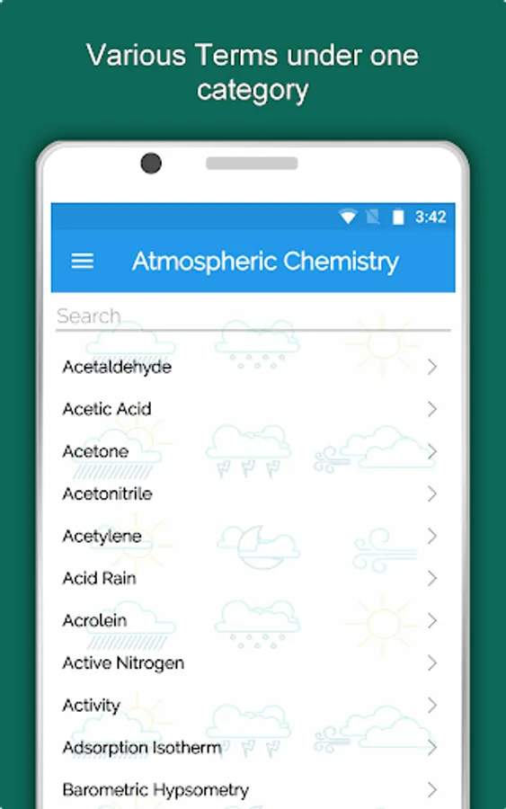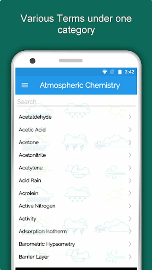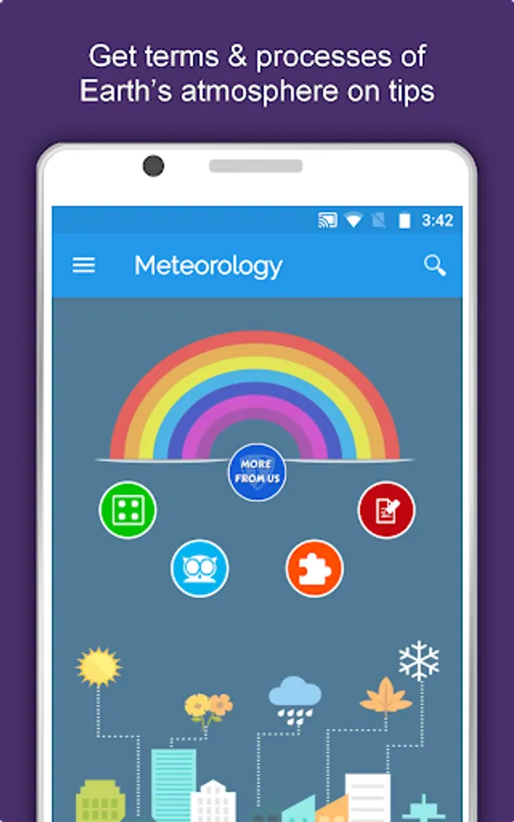 Meteorology Dictionary- Terms & Definitions is an app to explore scientific processes and phenomenon of the atmosphere. There are more than 4500 scientific terms classified under 12 broad categories. The app has Categories, Search, Contribute, EduBank℠, Quiz and more. The app had details about weather processes and climatic conditions.