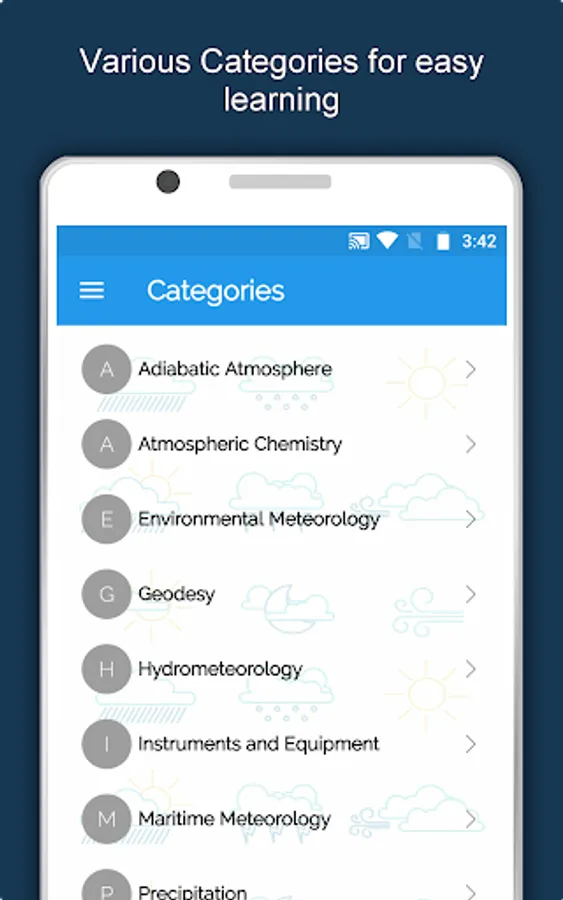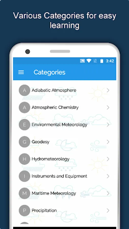 Categories of Meteorology Dictionary - Learn Atmospheric Science Offline are:-