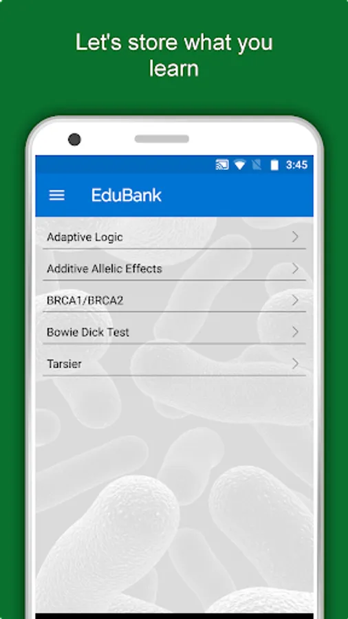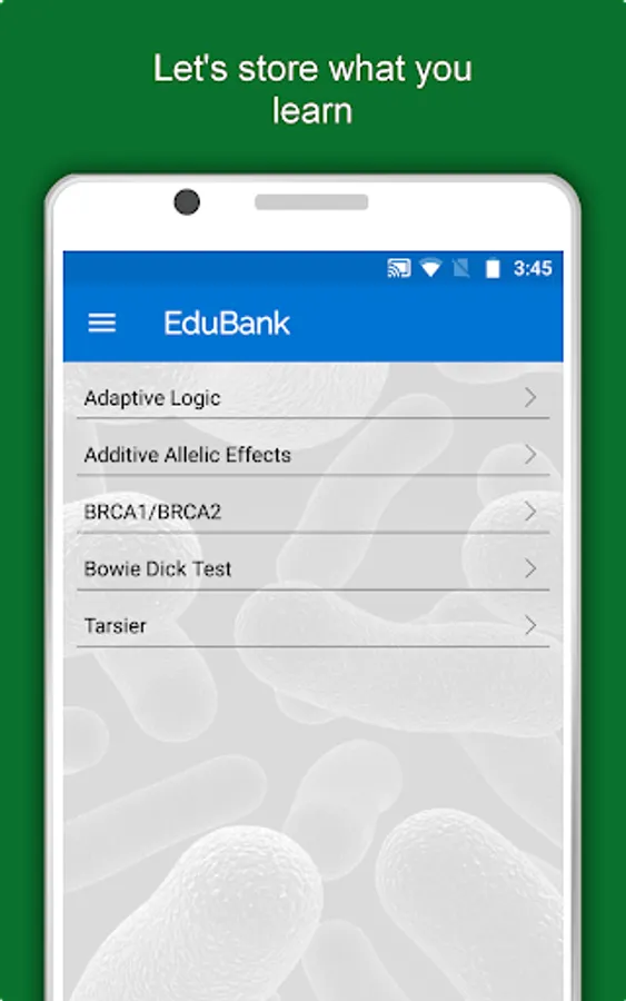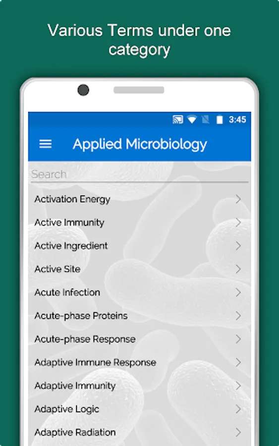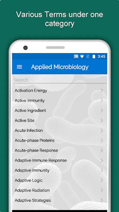 Microbiology Dictionary: Learn Basics of Microorganisms is an app to explore various terms related to microbiology, which is an important branch of science. Microbiology is the scientific study of microscopic organisms. Know the people who formed this science, professionally known as microbiologists. This Offline Microbiology Study App has more than 5300 microbiology terms under 3 broad categories and 17 subcategories. The app has Categories, microbiologists, Quick Guide, Search, Contribute, EduBank℠ and Quiz. The terms are neatly stacked under various categories for quick and easy learning.