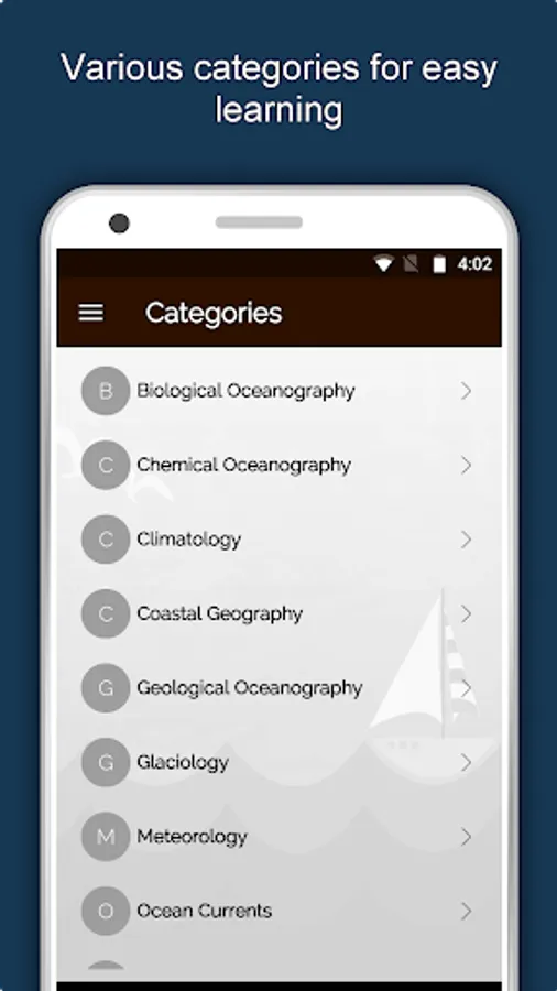 Oceanography is all about ocean science and how it changes and impacts the whole biological system. Study the life of Oceans and life within the ocean, biology and physical nature of oceans with this Oceanography Dictionary App. Install now and explore a world within!