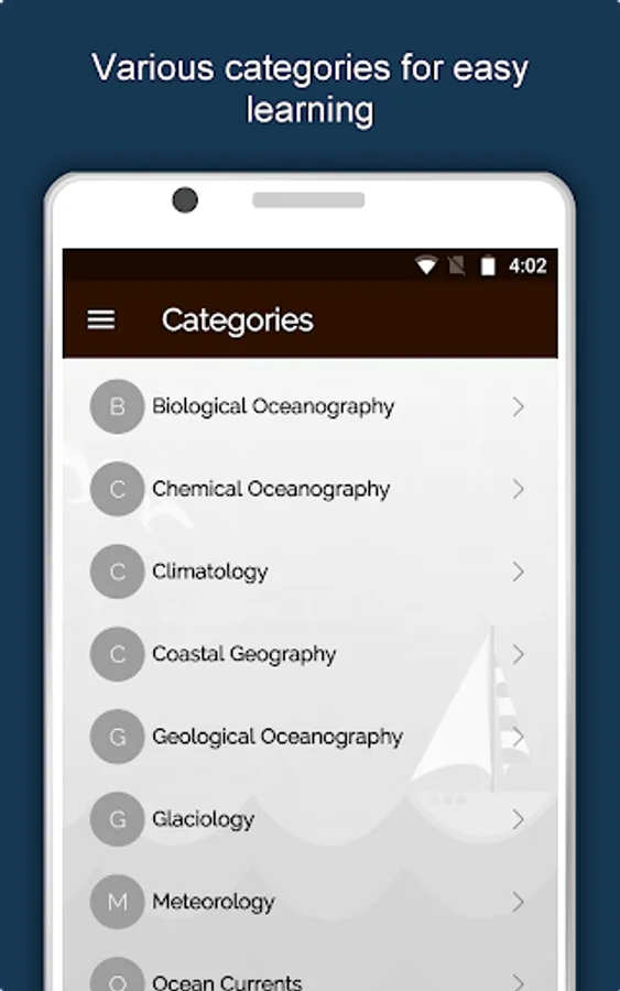 Oceanography Dictionary- Terms & Definitions App is here to support you in understanding the physical and biological diversity of sea. With more than 4000 terms and their meanings, this Oceanology Study App is as deep as an ocean. A Timeline of Oceanography feature will let you know about the developments in the field of Oceanography since the beginning of the time. Not only this, Diving History feature will give you detailed description historical of Scuba Diving suits with their inventors. For quick learning, this app is full of numerous quizzes to brush up your knowledge and challenge your learning.