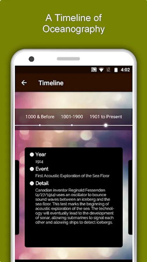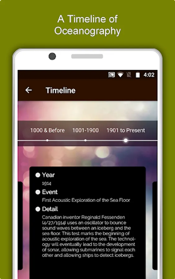 Timeline of Oceanography - With the information in the form of cards, this feature will introduce you to the history of oceanography.