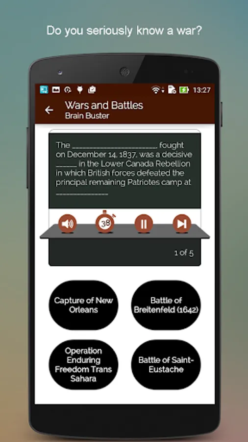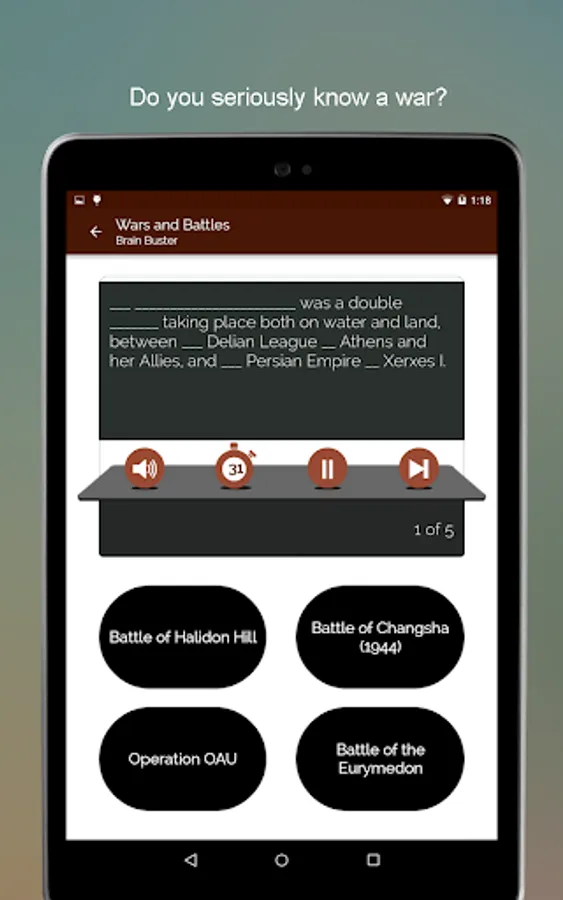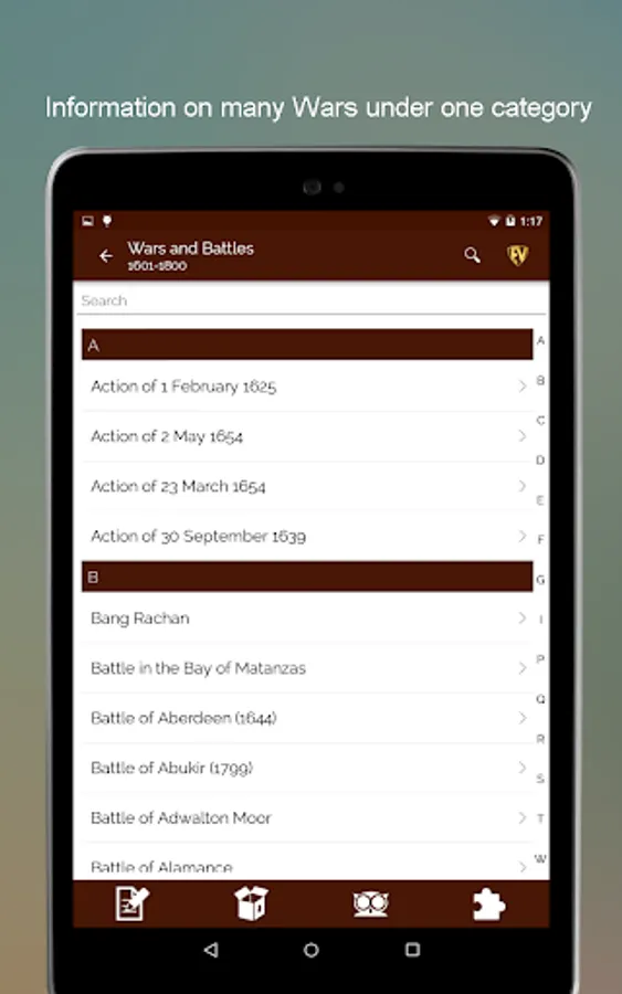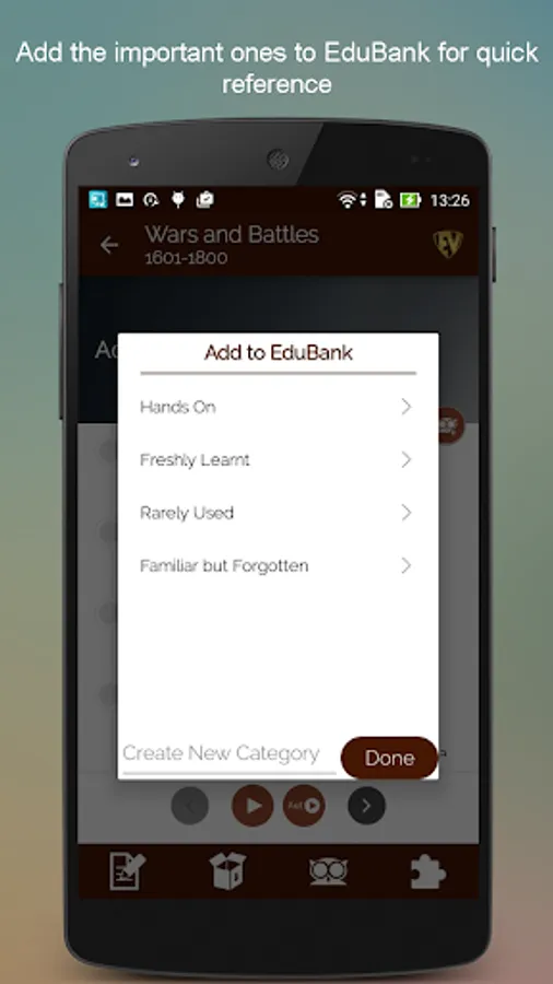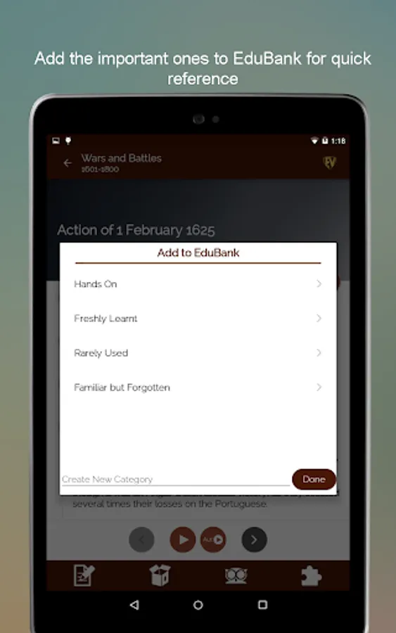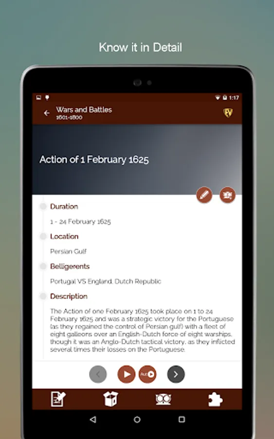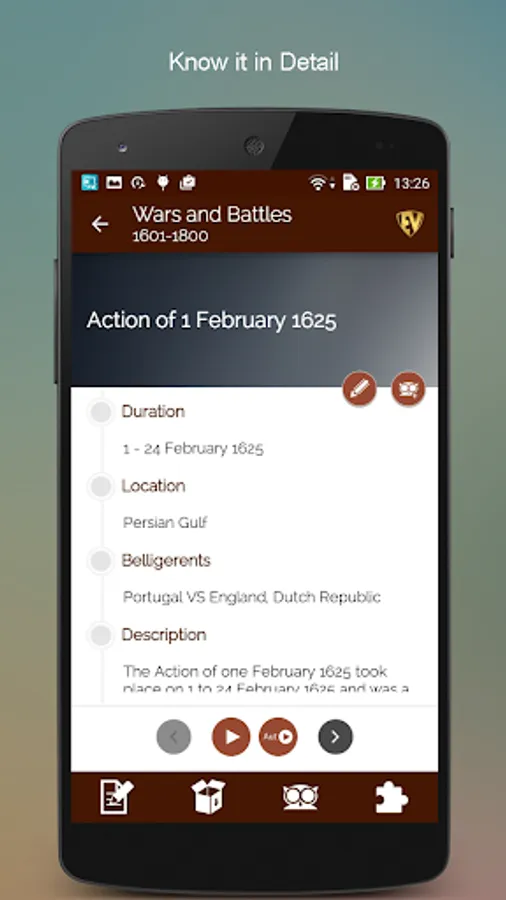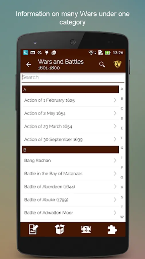 The purpose of all wars is peace and the purpose of Historical Wars & Battles- Terms & Definitions App is to inform you about all wars for peace. This Wars and Battles app has detailed description of more than 5500 major battles strategically placed in various categories. The app has Categories, Search, Contribution, EduBank, Quiz, Autoplay and more. With information on various civil wars, world war, revolutionary battles ever to take place on this planet, this Great Wars app will teach you a lot about wars of the past. Not only this, there are war games too to help you memorize the wars!