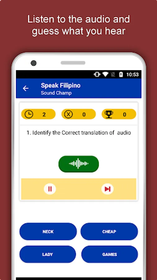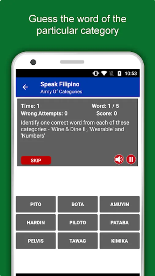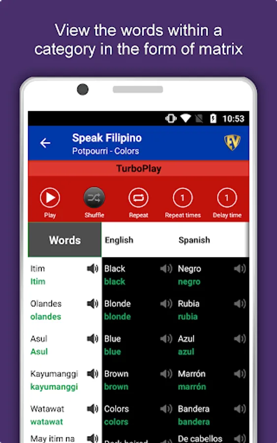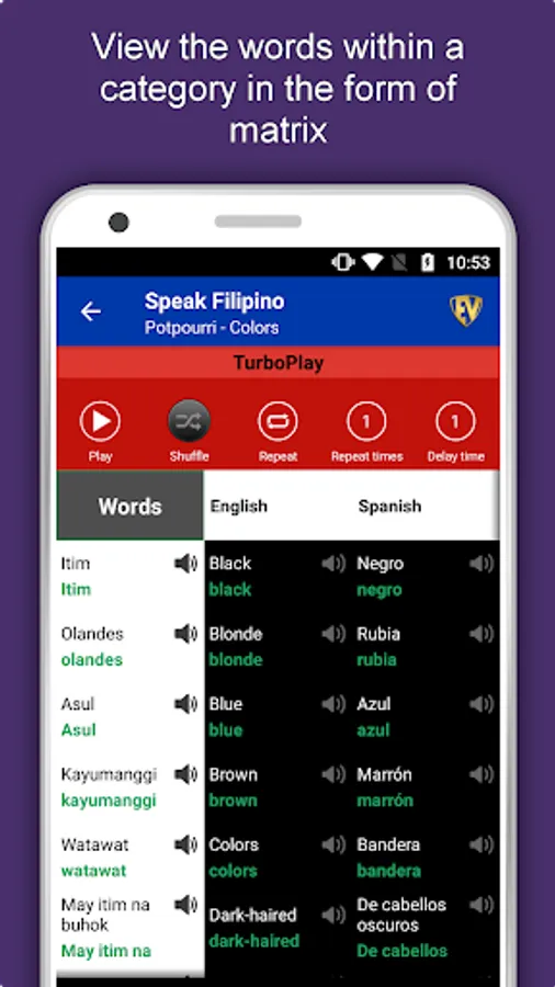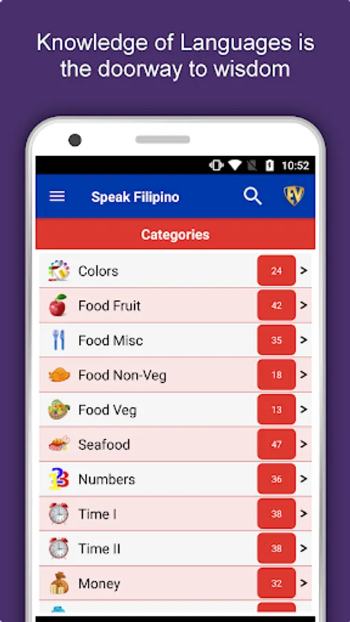 The offline Filipino learning app has 2,135 words with 55 categories. It contains pronunciation, images and phonetics of words for easy learning. Switch base language, audio play, potpourri and retention games are the main features of Speak Filipino app.