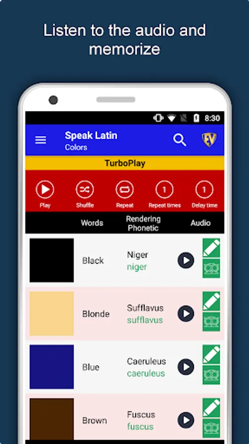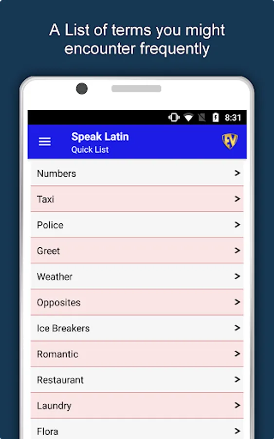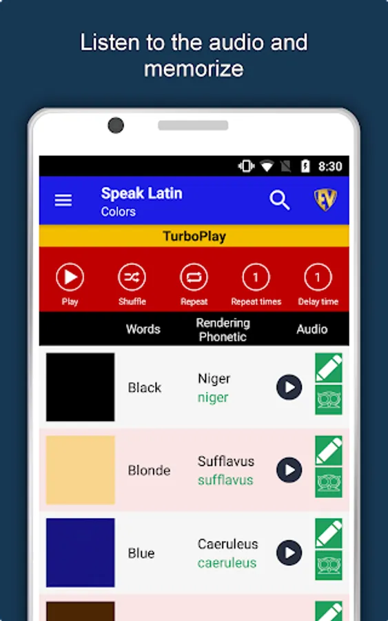 The offline Latin learning app has 2,135 words with 55 categories. It contains pronunciation, images and phonetics of words for easy learning. Switch base language, Save learnings in EduBank℠, audio play, Potpourri and retention games are the main features of Speak Latin app.