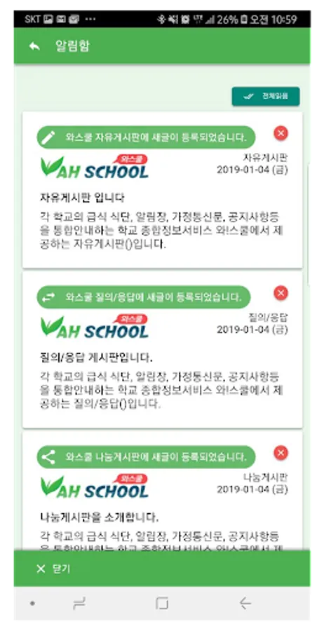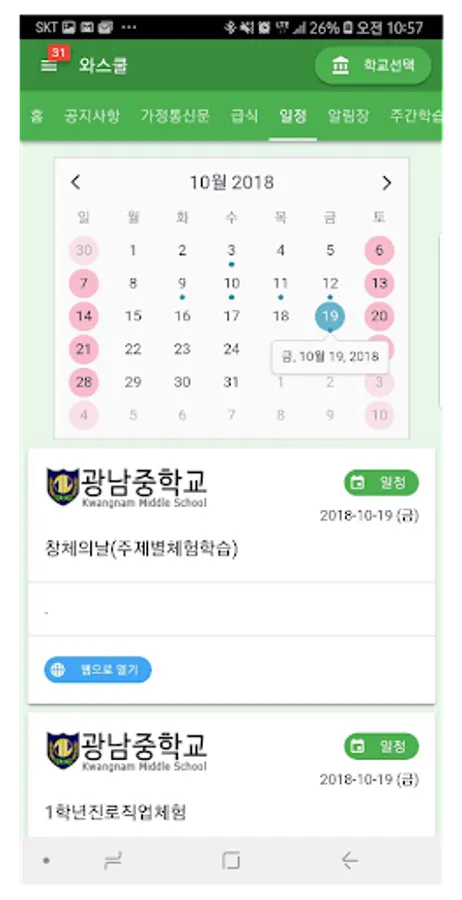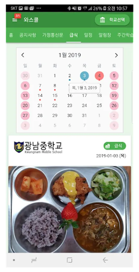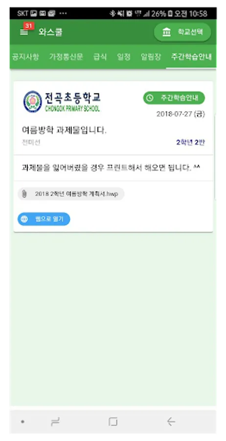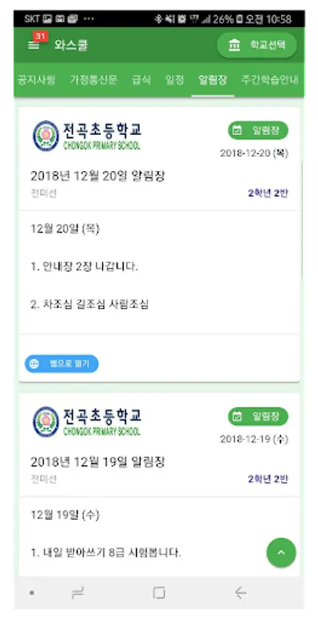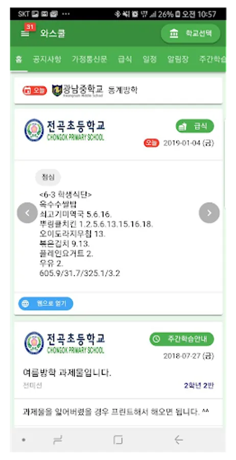 You can check school news such as school announcements, family correspondence, notices, meals, and school information such as school address, phone number, and homepage.