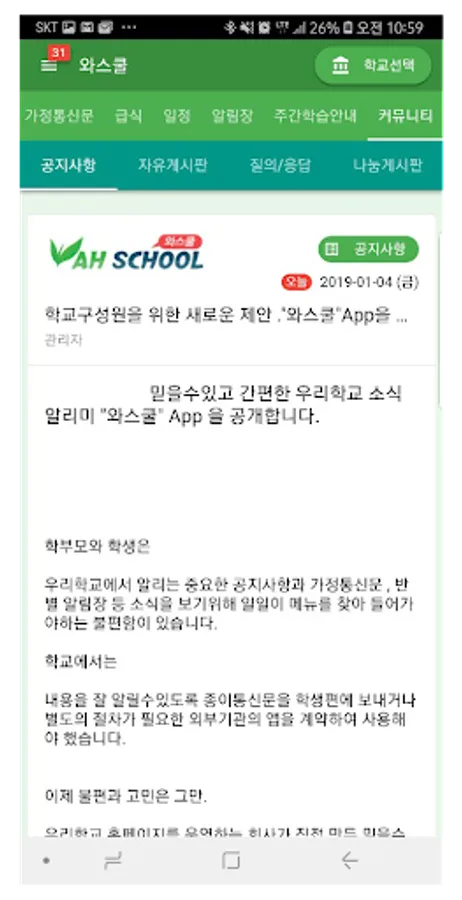 * Community: You can check the Q&A by region, school, and sharing bulletin board.