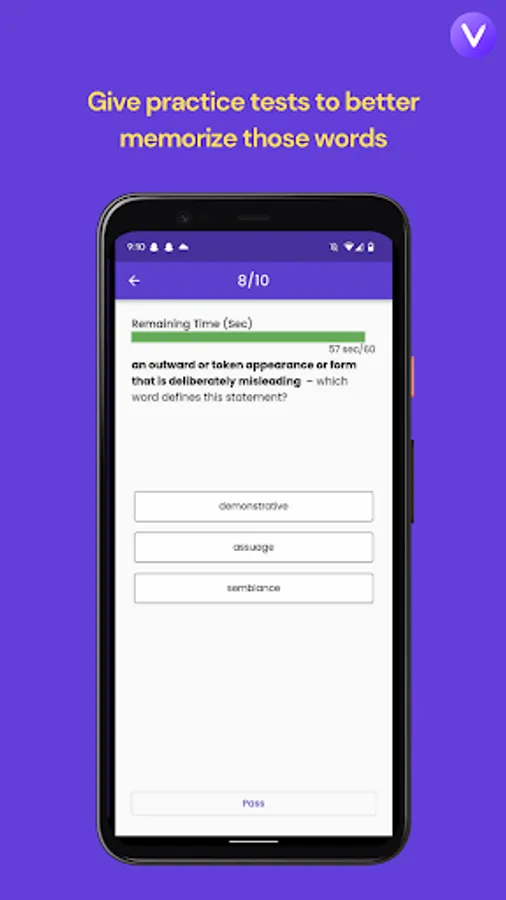 Disclaimer: Vocavive is not a dictionary app. Unlike other vocab apps, Vocavive is like a game dedicated to making you P-R-A-C-T-I-C-E the words. Because, without practice, you will not remember a word for even 10 minutes.