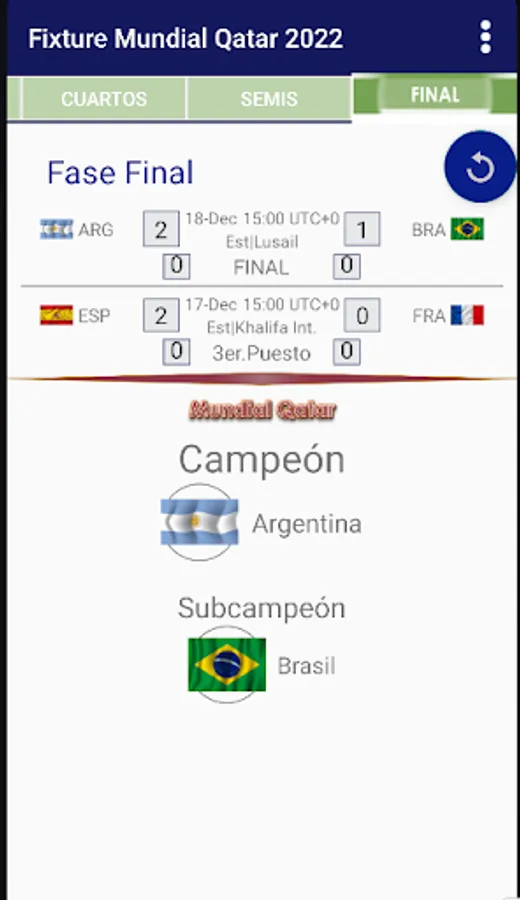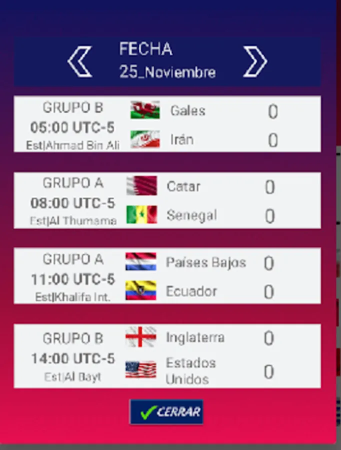 You are in the best APP so that you have control of the calendar and keep track of the 64 World Cup matches.