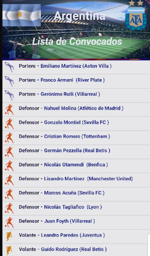 You will have at hand the information of the players of the 32 squads of those summoned to the World Cup.