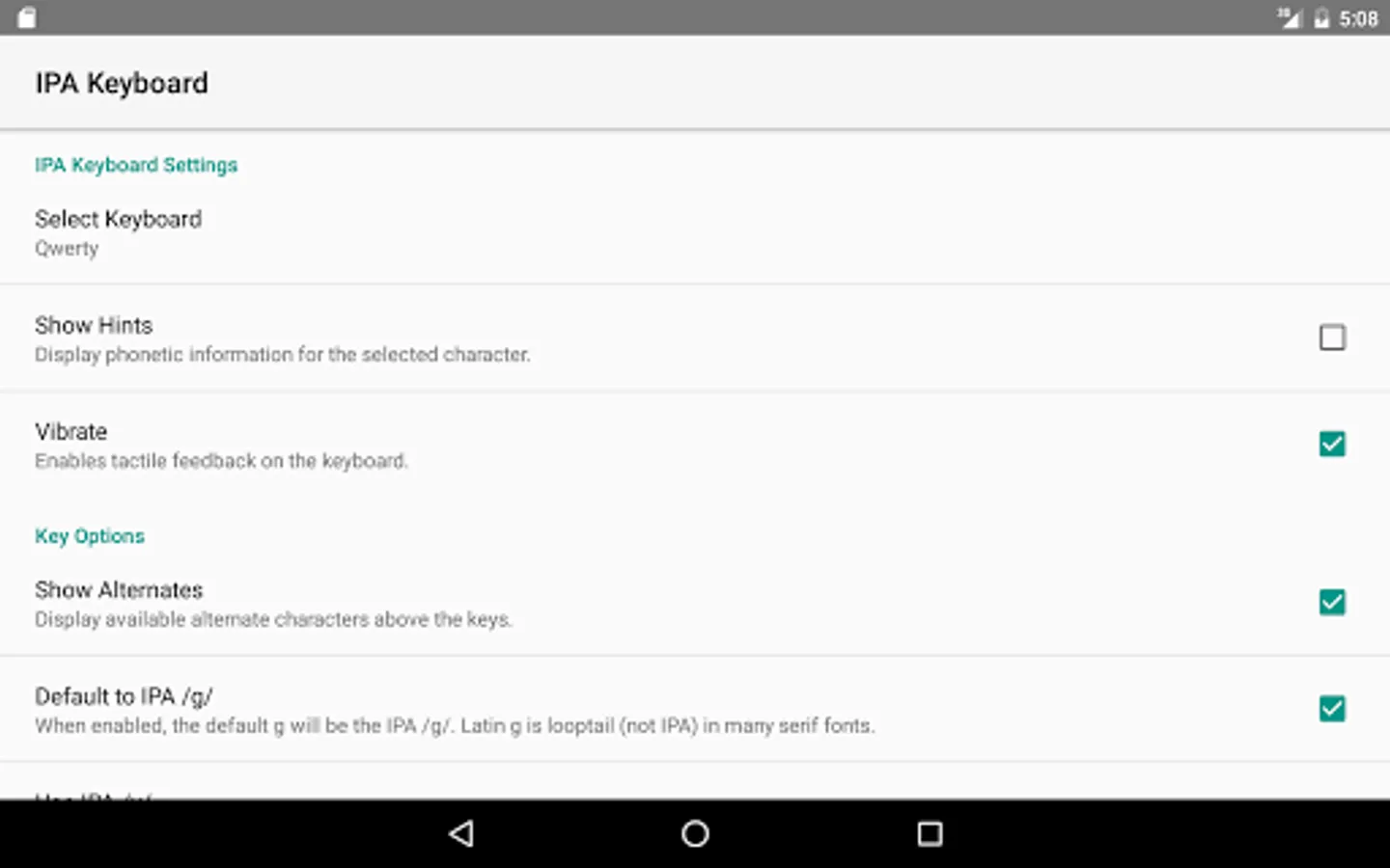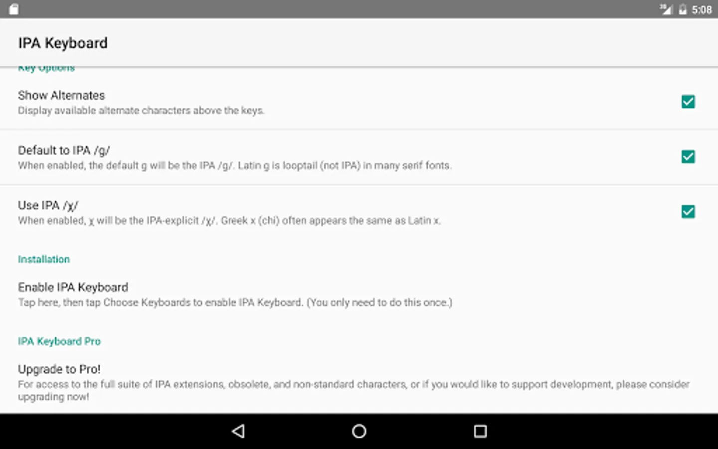 2. Enable IPA Keyboard from the App Settings (see the Installation section)