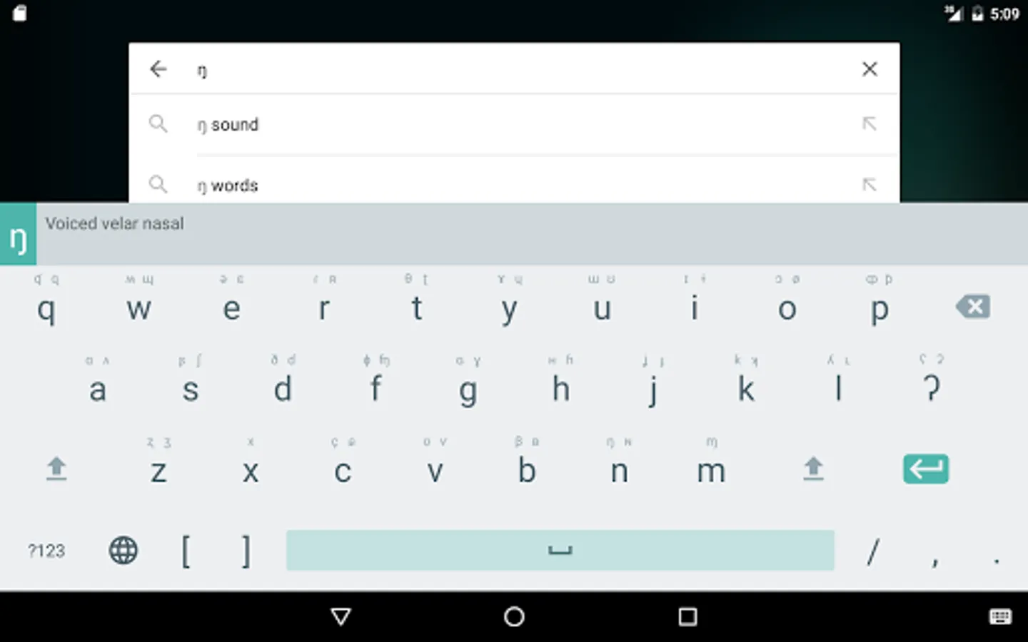 IPA Keyboard is the only keyboard that includes a full symbol reference built in. Simply enable the Hint Bar in the app preferences. Tap on any key to reveal the phonetic description of the symbol.
