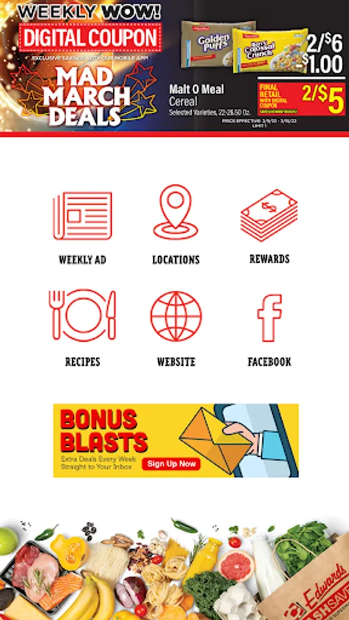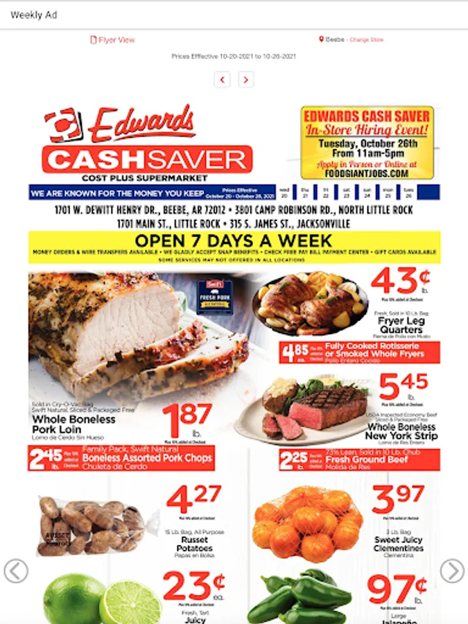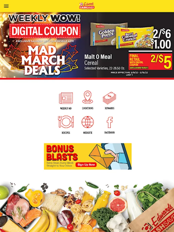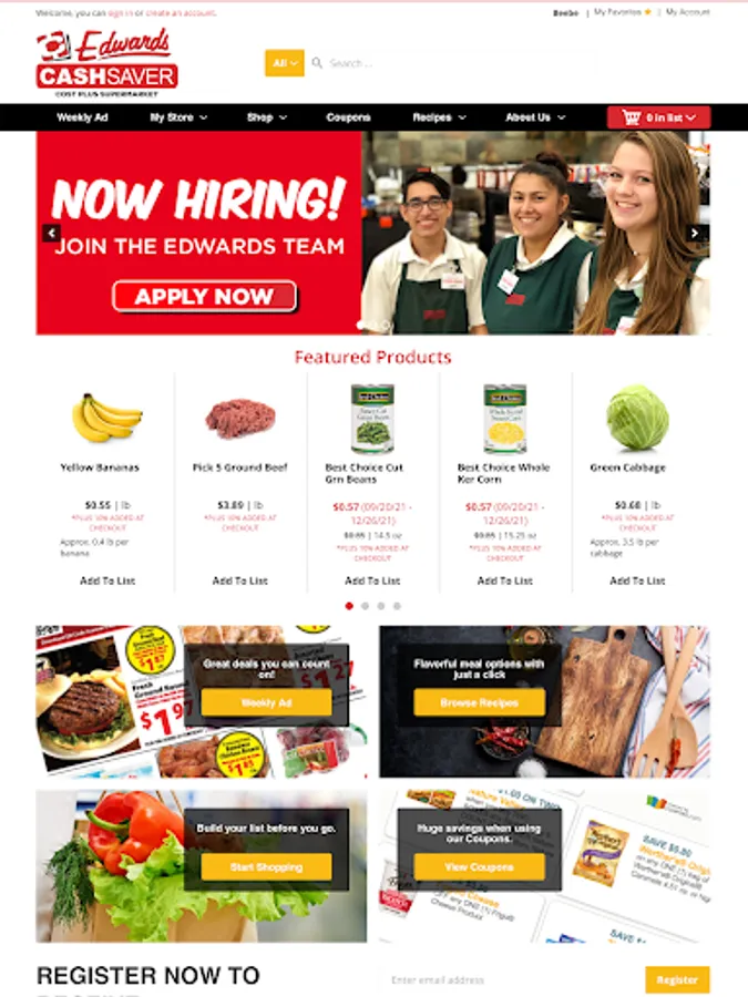 Your local Edwards Cash Saver in your hand. New rewards program lets you save more! View our weekly ad. Save time by shopping on online and pickup later!