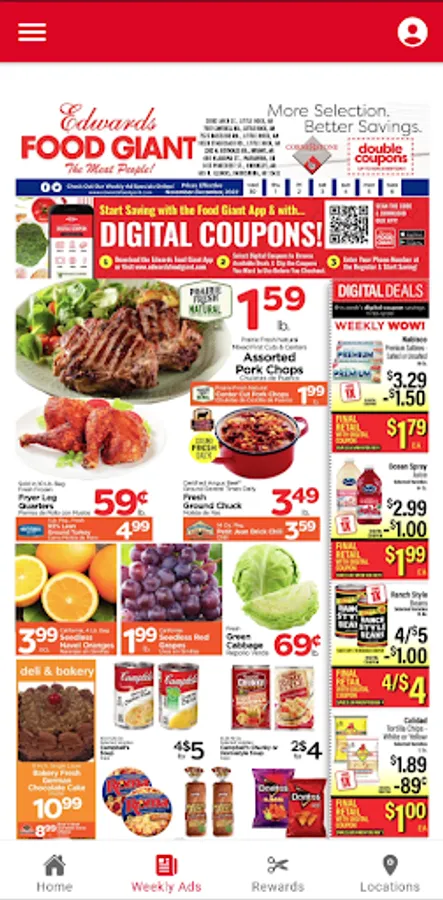 Your local Edwards Food Giant in your hand. New rewards program lets you save more! View our weekly ad. Save time by shopping on online and pickup later!