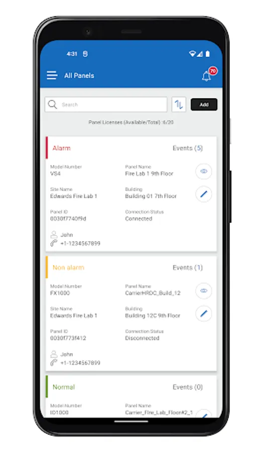A cloud connected solution from Edwards to improve serviceability of iO series fire control panels. This solution aims to reduce service cost through remote access of fire panels by enabling remote monitoring of events , reports , diagnostics via a web browser and mobile applications.