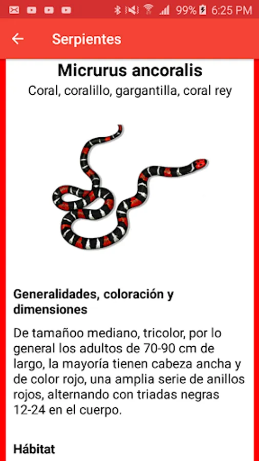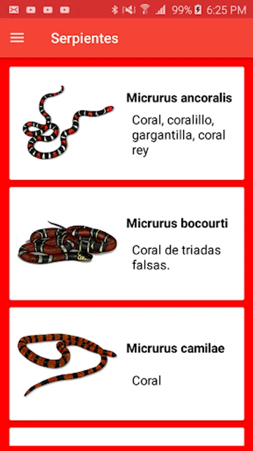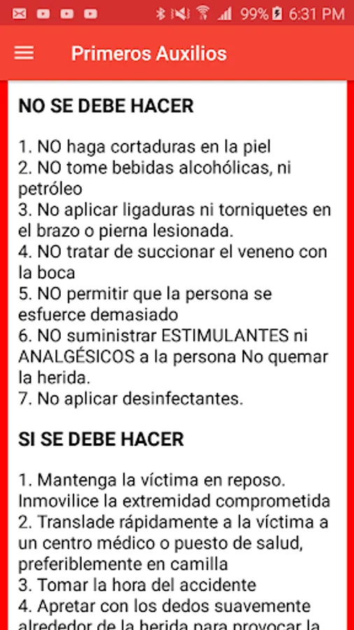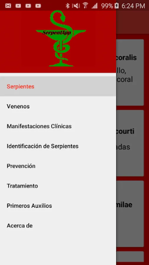 SerpentApp is an application that was born with the purpose of contributing to the process of prevention of the ophidian accident in Colombia, by detecting its species, the care and precautions that must be taken when it comes to places that are at high risk of being in contact with these species. The application is designed so that anyone can easily access it, since it is also available offline for people who do not have internet access in rural and / or remote areas. This application does not collect everything, but it does contain the necessary information to know how to act in the event of an event.