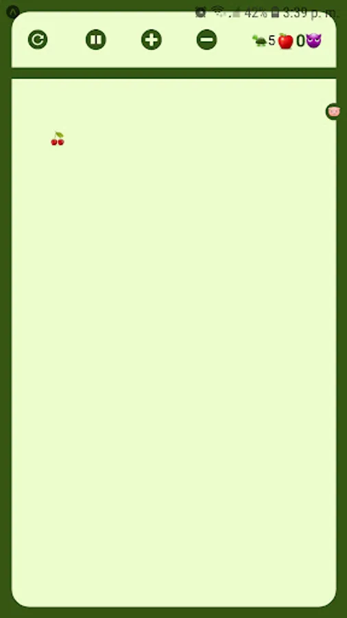 The popular and old snake game is simulated for my grandchildren and great grandchildren to play but a little pig is the one that eats the fruits.